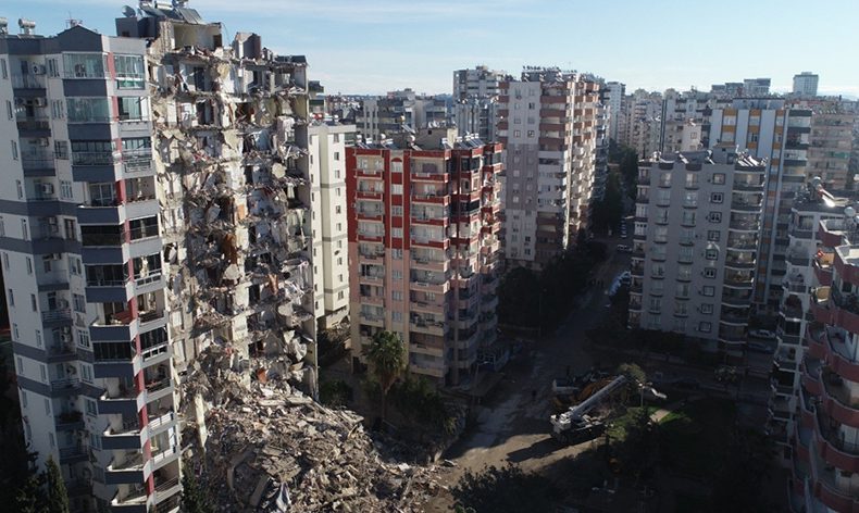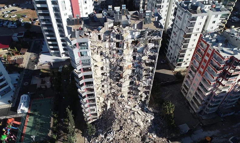 Çukurova ilçesi Güzelyalı mahallesinde 3 bloklu 13 kat 39 daireden oluşan Mete Apartmanı’nın 1 bloğu çöktü. Kurtarma ekiplerinin arama çalışmaları iz takip köpekleri ile devam ederken enkaz altında kalanların yakınlarının gözü yaşlı bekleyişi de sürüyor. Enkaz altındaki 11 kişinin yakınlarından biri dünden beri yeğenini beklediklerini söyleyerek “Biran önce çıkarılmasını bekliyoruz” dedi. Öte yandan yarısı yıkılan Mete Apartmanı bugün drone ile görüntülendi.
