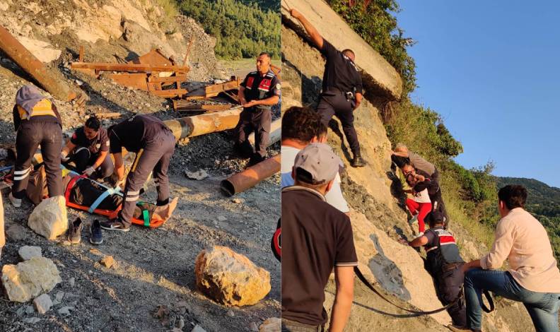 Kayalıklarda mahsur kalan küçük kız halat yardımıyla güvenli bölgeye indirilirken yeğenine ulaşmak isterken düşüp yaralanan dayı ise sedyeye alınıp olay yerindeki ilk müdahalesinin ardından ambulansa taşındı.