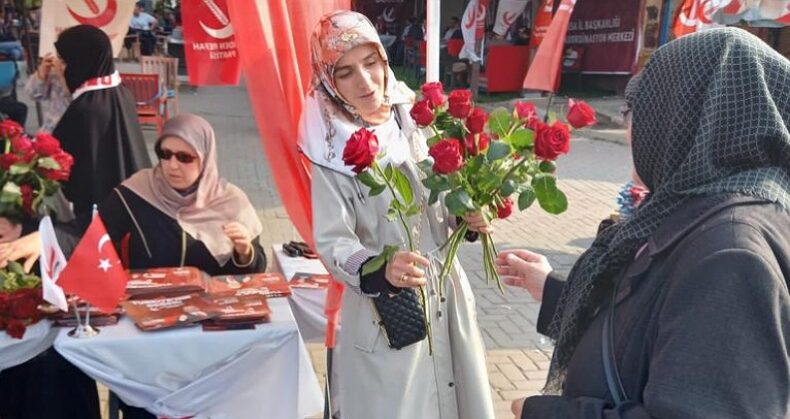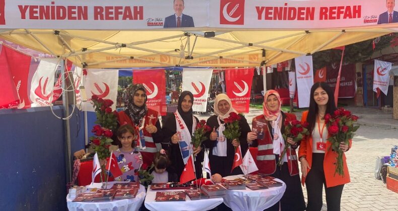 Millet vekili adayları eşliğinde ellerinde güller ile Mecmettin Erbakan’ın “Bir çiçekle bahar olmaz ama her bahar bir çiçekle başlar” sözünden yola çıkarak seçmenlerini gül ile karşılayan Yeniden Refah Partisi, seçmeninden büyük ilgi görüyor.