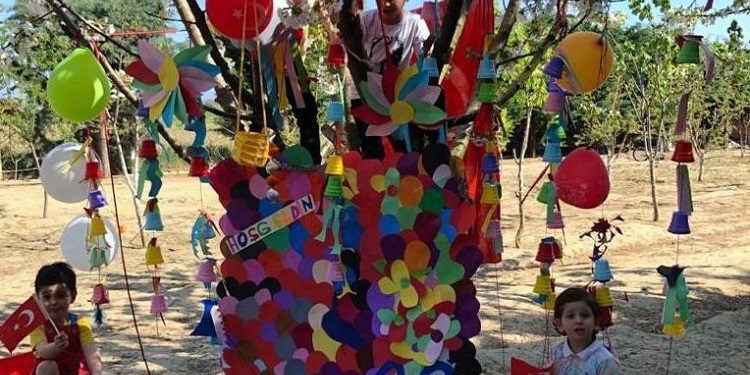 Bursa’nın Yenişehir ilçesinde Akçeşme İlköğretim Okulunda okuyan öğrenciler 23 Nisan Ulusal Egemenlik ve Çocuk Bayramında ağaçları bayraklarla süsledi.