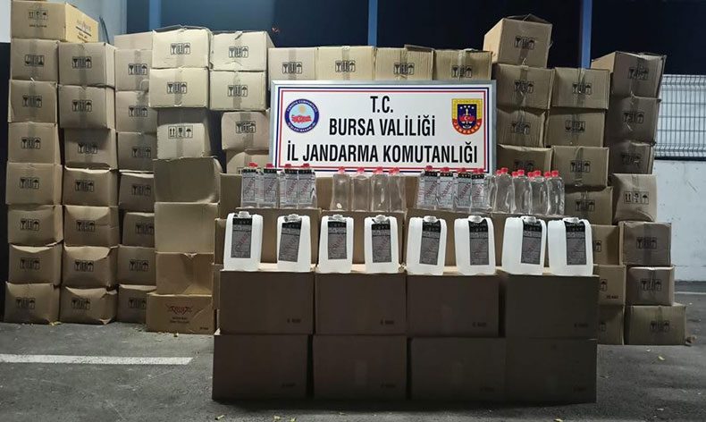 İl Jandarma Komutanlığı’na bağlı ekipler, yaklaşan yılbaşı öncesi sahte alkol ile alakalı merkez Osmangazi ilçesinde G.Y. ve S.Y. isimli şüphelilerin ağda salonu adı altında kullandıkları depoda sahte alkol yaptıklarını tespit etti. Şüphelilere ait ağda salonu görünümlü depoya baskın yapılırken, 2 kişi burada gözaltına alındı. Depoda yapılan aramalarda, sahte, yanıltıcı etiket bulunan ve etiket bulunmayan 1 ve 5 litrelik şişeler içerisinde toplam 6 bin 44 litre etil alkol ele geçirildi.