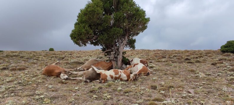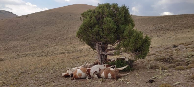 Geçtiğimiz günlerde Malatya’da etkili olan yağışlı hava hayatı olumsuz etkiledi. Arguvan ilçesi Şotik Mahallesi Eşkinli mevkiinde Davut Çıplak’a ait büyükbaş hayvanlar, yağmurun yağmasıyla ağacın altında toplandı. Yağmur esnasında yıldırımın hedefi olan ağaç çevresindeki 9 büyükbaş hayvan telef oldu.