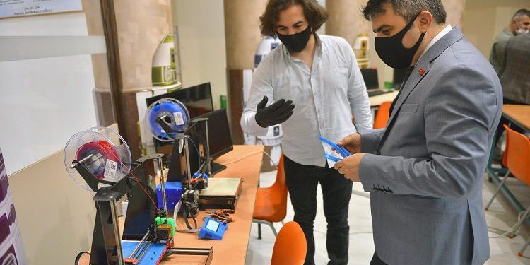 Yıldırım Belediyesi’nin Cezeri Robotik Kodlama Atölyesi’nde 3 boyutlu yazıcılarla sağlık çalışanları ile belediye personelinin kullanması için siperlik yüz maskesi üretimine başlandı. Kodlama atölyesinde bulunan 2 adet 3 boyutlu yazıcı üretim için durmaksızın çalışırken atölyedeki hocalar ve belediye personelleri tarafından 1 günde 50 adet siperlik maske imal ediliyor. Maskeler, insan sağlığı için tehdit oluşturmayan organik flament kullanılarak 3 boyutlu yazıcılarda basılırken, 1 adet siperlik maskenin hazırlanması yaklaşık 1 saat sürüyor.