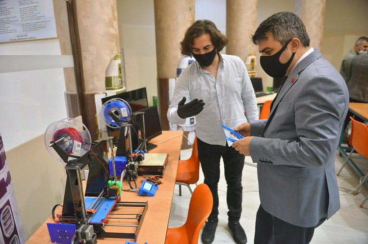 Yıldırım Belediyesi’nin Cezeri Robotik Kodlama Atölyesi’nde 3 boyutlu yazıcılarla sağlık çalışanları ile belediye personelinin kullanması için siperlik yüz maskesi üretimine başlandı. Kodlama atölyesinde bulunan 2 adet 3 boyutlu yazıcı üretim için durmaksızın çalışırken atölyedeki hocalar ve belediye personelleri tarafından 1 günde 50 adet siperlik maske imal ediliyor. Maskeler, insan sağlığı için tehdit oluşturmayan organik flament kullanılarak 3 boyutlu yazıcılarda basılırken, 1 adet siperlik maskenin hazırlanması yaklaşık 1 saat sürüyor.