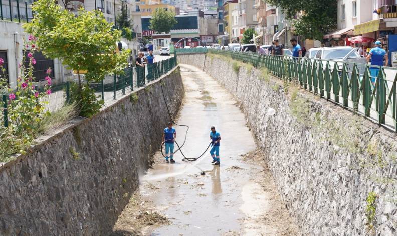 1 buçuk kilometreden oluşan kanalda, kosa ve budama çalışmaları gerçekleştiren ekipler, çevre ve insan sağlığını tehdit eden olumsuzlukları ortadan kaldırmak ve görüntü kirliliğine son vermek amacıyla ortaya çıkan atıkları bertaraf etti. Dere yatağını tazyikli su ile yıkayan ekipler, kanalda detaylı bir temizlik çalışması gerçekleştirdi.