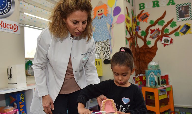 Yıldırım Belediyesi Sağlık Müdürlüğü ekipleri tarafındanVakıf, Çınarönü ve Şirinevler Ana Kucağı Merkezlerinde eğitim gören miniklere ağız ve diş sağlığı eğitimi verildi. Çocuklar, doğru diş fırçalama yöntemleri, ağız ve diş sağlığı, ağız bakımının önemi, diş çürükleri ve tedavisi, diş çürüklerinin yol açtığı hastalıklar konularında bilgilendirildi. 200’e yakın çocuğun ağız ve diş sağlığı konusunda bilgilendirildiği programlar önümüzdeki haftalarda ilçedeki diğer kreşlerde de gerçekleştirilecek.