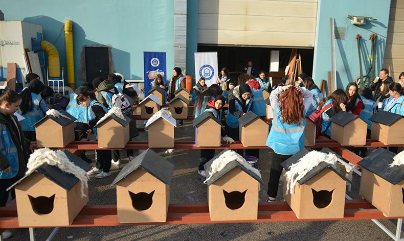Fen İşleri Müdürlüğü’müz, ‘Veteriner İşleri Müdürlüğü’müzün talebi üzerine, parke tesisinde kullanılamayan ahşap palet parçalarından oluşan kedi evlerinin kasasını ve Kültür Müdürlüğü’müzün kullanmış olduğu vinil afişlerini de çatı kaplama malzemesi olarak kullanıp 40 adet kedi evi hazırladı. Bizler de Değirmen Gençlik ekibimizin iyilik gönüllüleri ile birlikte işin mutfağı olan şantiyemizde kedi evlerini rengarenk boyadık. Soğuk kış günlerinde minik dostlarımız için kullanılmayan atık paletleri ve çelenkleri sıcak yuvalara dönüştüren ekip arkadaşlarımı ve çevresine duyarlı genç kardeşlerimi bu farkındalıklarından dolayı tebrik ediyor, ilçemizin sessiz sakinlerini sıcak yuvaya kavuşturan hemşehrilerimize de teşekkürlerimi sunuyorum” ifadelerini kullandı.