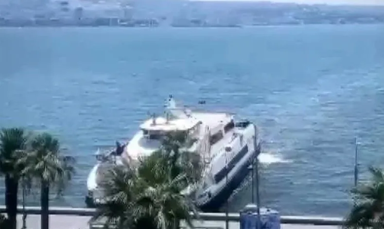 İzmir’de İZDENİZ’e ait “Dokuz Eylül” isimli yolcu gemisi, makinesinde yaşanan arıza nedeniyle Karşıyaka İskelesi yakınlarında kıyıya çarptı.