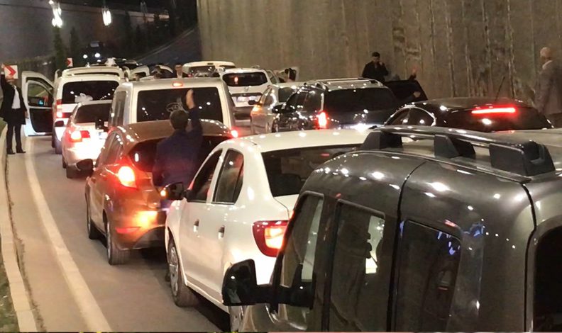 Elazığ merkez Zübeyde Hanım Caddesi Çaydaçıra alt geçidinde düğün konvoyundaki bir grup, seyir halinde iken birden otomobilleriyle yolu trafiğe kapattı.
