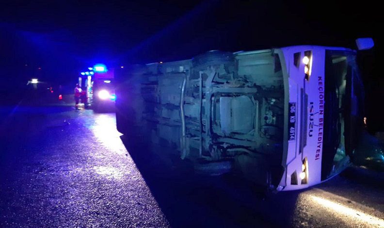Ankara Keçiören Belediyesine ait yolcu otobüsü, gece saat 02.30 sularında Yozgat-Sivas Karayolu Akdağmadeni ilçesi Oluközü beldesi yakınlarında sürücüsünün direksiyon hakimiyetini kaybetmesi sonucu karşı şeride geçerek devrildi.
