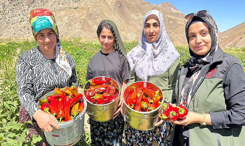 Yüksekova’da yağışlar, tarım ürünlerinde verimin artmasına neden oldu. Bereketli bir mevsim yaşayan çiftçiler, ektikleri ürünlerin hasadına başladı. İlçeye 40 kilometre uzaklıktaki Gökyurt köyüne bağlı Yeşildere Mezrası’nda yaşayan çiftçi kadınlar, ektikleri biberin hasadı için yoğun mesai harcıyor. Sabahın ilk ışıklarıyla birlikte tarlaya giden kadınlar, kapya biberin hasadını gerçekleştiriyor.