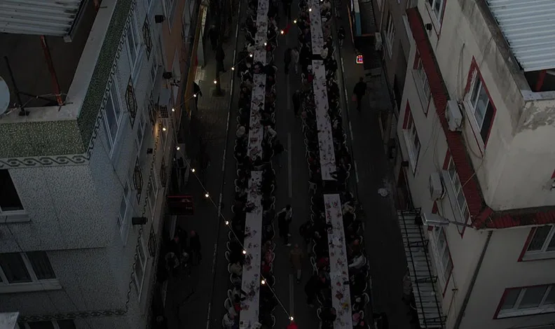 Mahalle gençlerinin bu yıl 3’ncüsünü organize ettiği programda birlik ve beraberlik görüntüleri oluşurken, iftar sofraları yüzlerce metre boyunca caddeyi doldurdu. Şehir dışından da birçok kişinin katıldığı programda mahalle sakinleri Ramazan’ın bereketini aynı sofrada paylaştı.