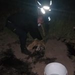 Ağrı’nın Doğubayazıt ilçesinde Doğubayazıt-Ağrı karayolu kenarında asfalt zifti birikintisine düşen köpek itfaiye ekipleri tarafından kurtarıldı.