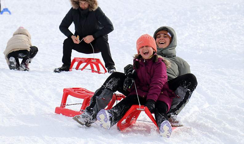 Tatilin başlaması ve yoğun kar yağışının ardından kayak pistleri, kızağa binen çocuklar ve doğanın keyfini çıkaran ziyaretçilerle dolup taştı.